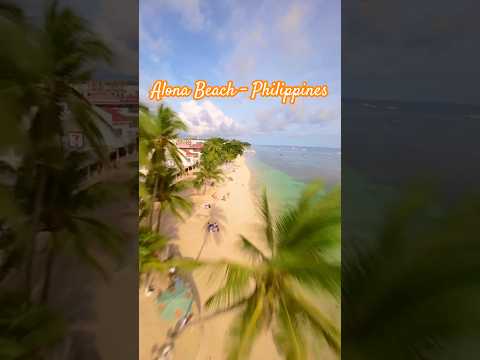 Survol spectaculaire d'Alona Beach capturé en FPV, révélant les dégradés hypnotiques de l'océan philippin. Des eaux cristallines turquoise se fondent progressivement dans les bleus profonds…